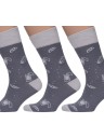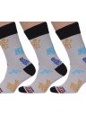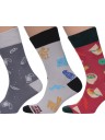 Комплект мужских носков из 3 пар, круглогодичные, средней длины, цвета: салатовые, серые, темно-синие, повседневные, шов обычный (не бесшовные), принт (рисунок): надписи, музыка, животные, еда и напитки, крупные контрастные рисунки, состав: 82% хлопок, 15% полиамид, 3% эластан, арт. Msk3-М37. Производитель «ИП Рыбалкин В.С., Московская область, г. Щелково» под брендом «Msclub».
