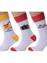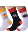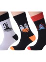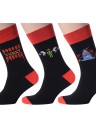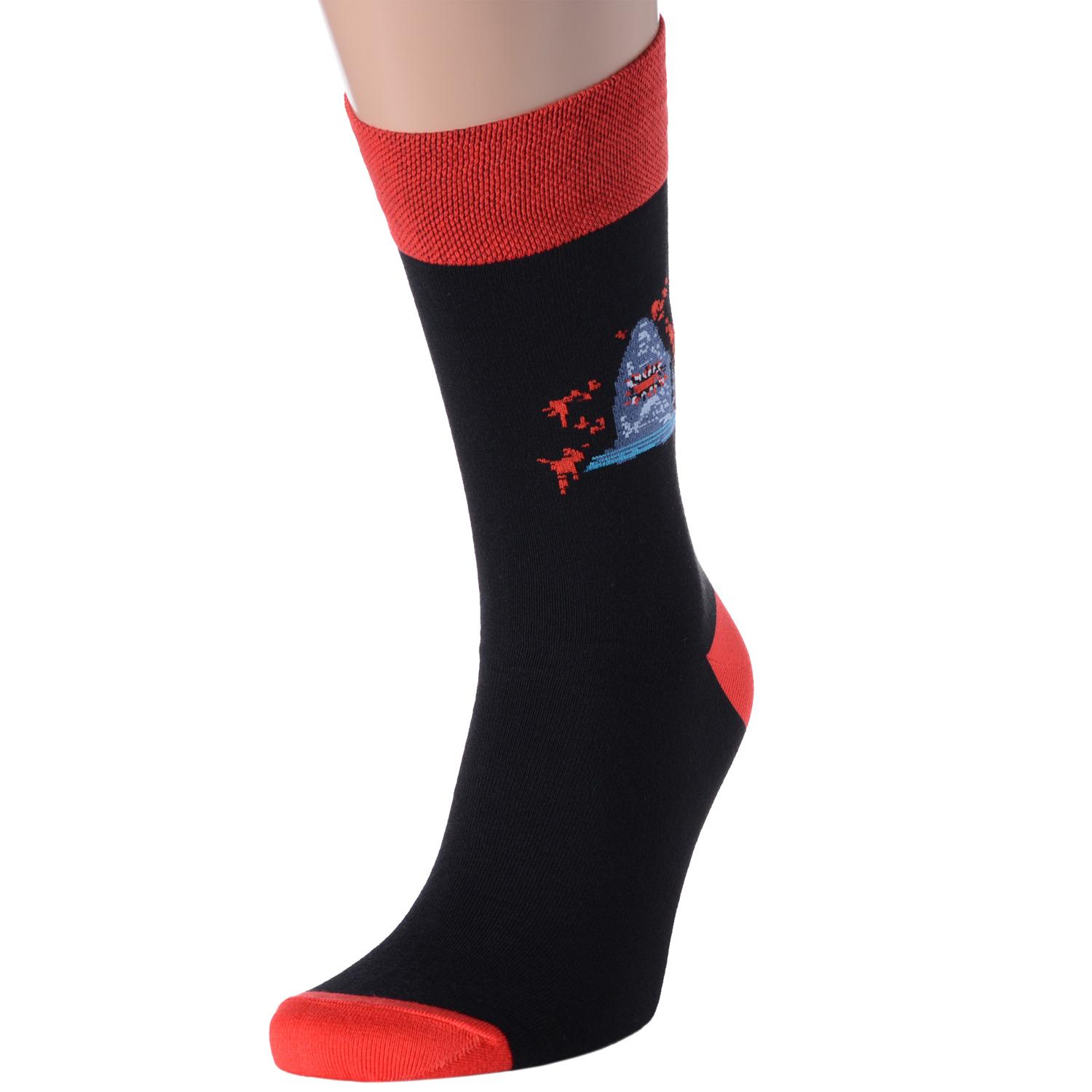 Комплект мужских носков бренда MSCLUB с принтами на хоррор-тематику: по 1 паре со скелетом, с акулой, с надписью "Ужас, милый ужас".