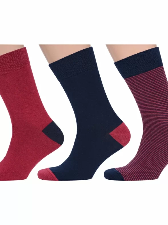 В комплект входят 3 пары носков с индивидуальными фабричными этикетками: по 1 паре красного, темно-синего и бордового цвета.