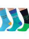 В комплект входят 3 пары носков: по 1 паре голубых c надписью "Game over", бирюзовых с надписью "Press Start" и черно-зеленых с надписью "Level up". Носки поставляются с индивидуальными фабричными этикетками в обычном или курьер-пакете.