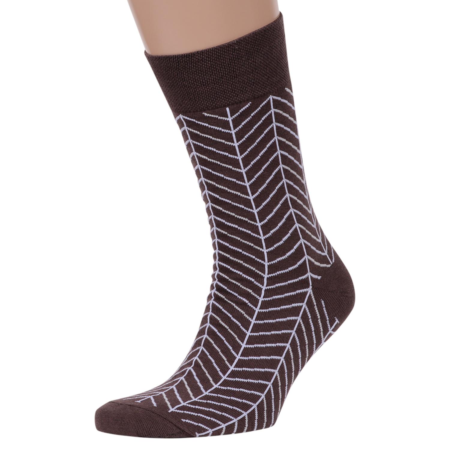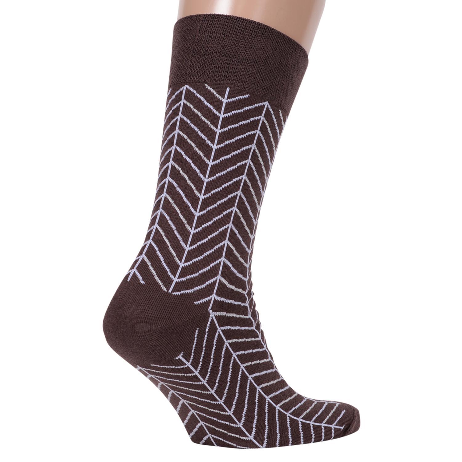В комплект входят 3 разные пары носков: по 1 паре коричневых с узором "елочка", разноцветных с полосами и бордовых с контрастными ромбами. Носки поставляются с индивидуальными фабричными этикетками в обычном или курьер-пакете.