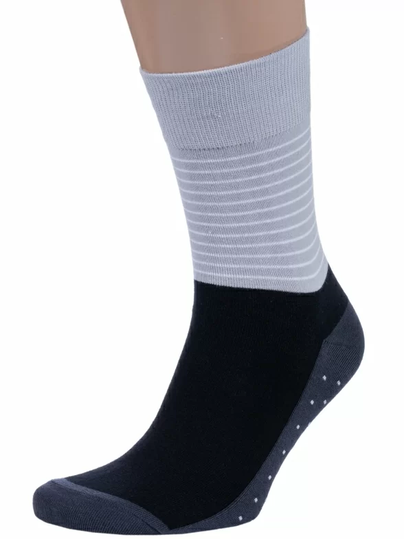 В комплект входят 3 пары носков: по 1 паре серо-черных с полосками и точками, темно-серых в крестик и серых в полоску. Поставляются с индивидуальными фабричными этикетками в обычном или курьер-пакете.