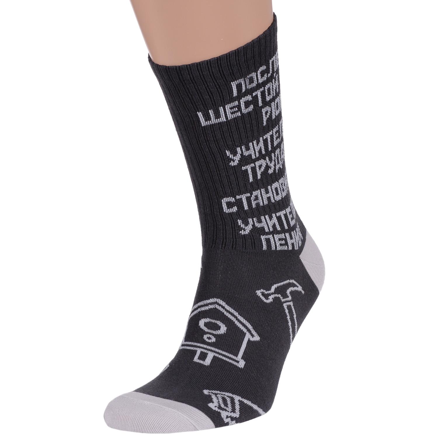 Комплект носков бренда MSCLUB с шутливым принтом на тему учебы в школе. Главная надпись "После шестой рюмки учитель труда становится учителем пения" расположена только с одной лицевой стороны, по этому признаку можно отличить левый и правый носок в паре.