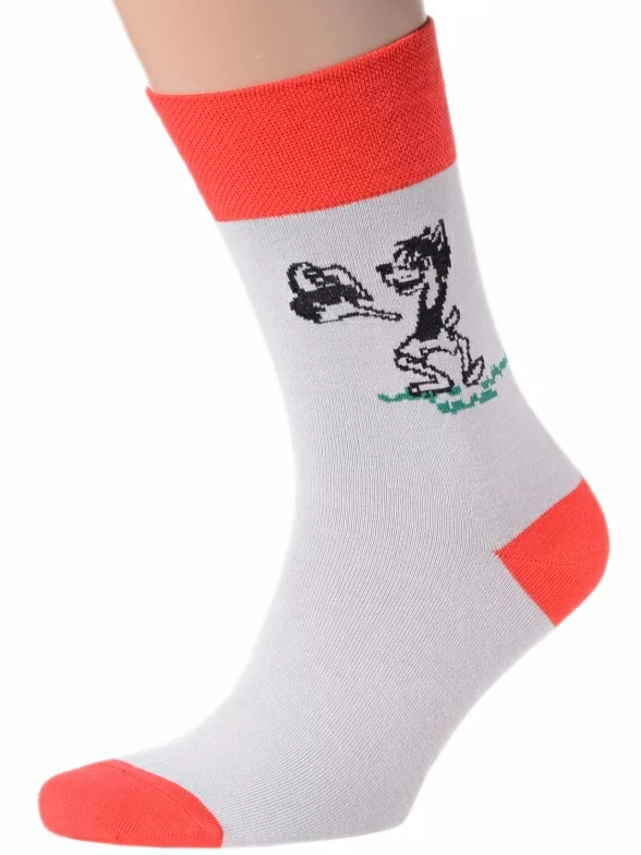 Комплект мужских носков бренда MSCLUB с изображением волка, ловящего яйца в известной советской игре "Электроника". Главный принт расположен только с одной лицевой стороны, по этому признаку можно отличить левый и правый носок в паре.