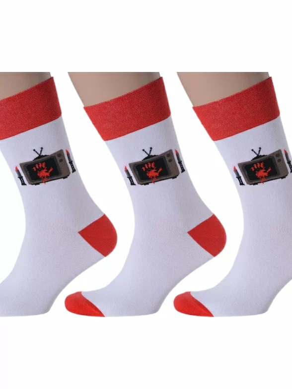 Комплект мужских носков бренда MSCLUB с принтом в виде кровавого отпечатка на телевизоре.