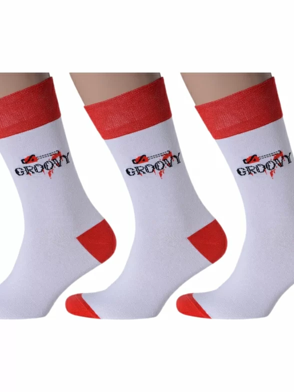 Комплект мужских носков бренда MSCLUB с принтом в виде бензопилы и с надписью "Groovy" (с англ. "Круто").