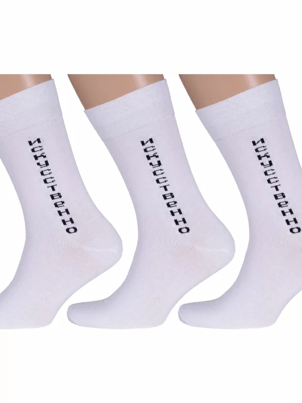 В комплект входят 3 одинаковые пары носков белого цвета, поставляются с индивидуальными фабричными этикетками в обычном или курьер-пакете.