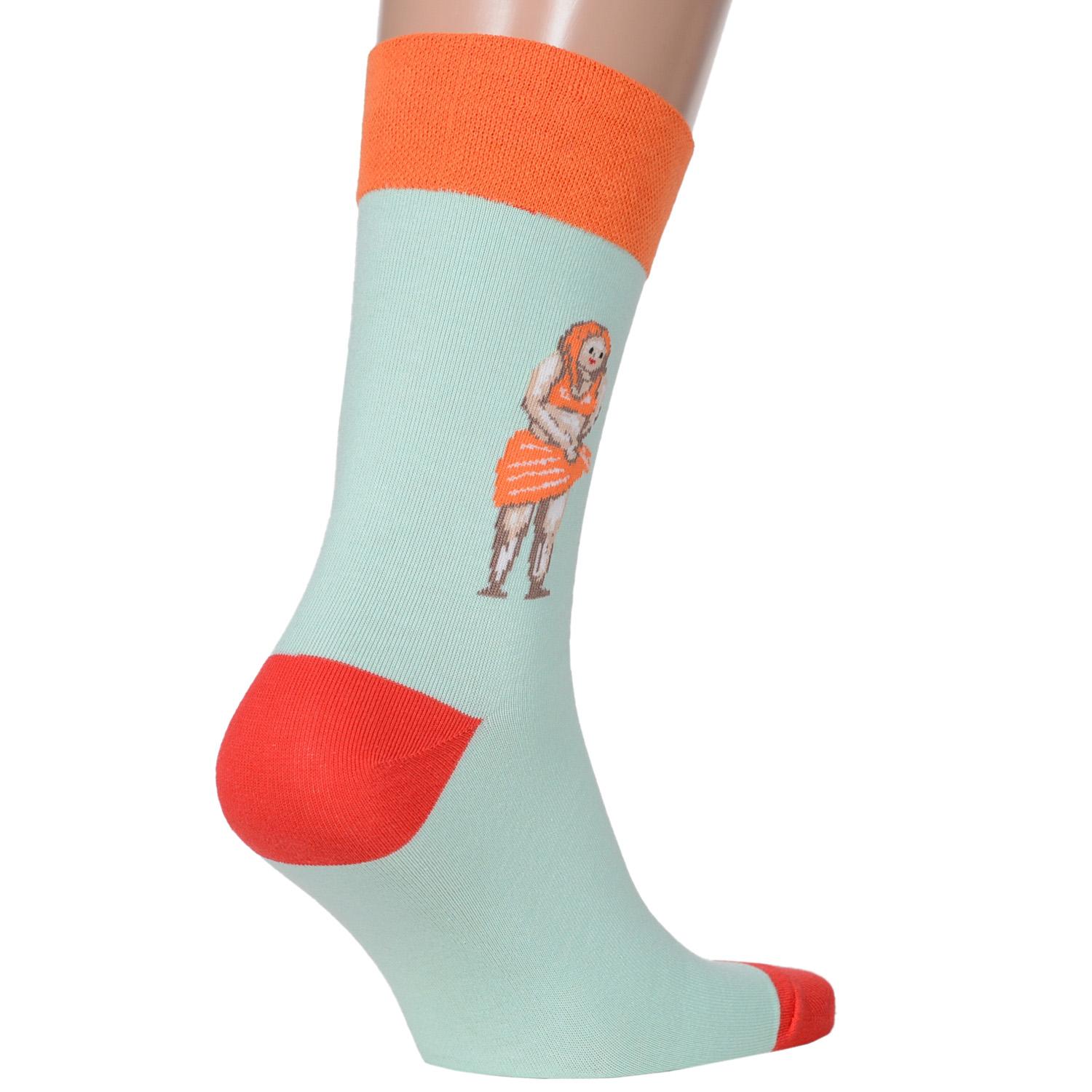 Комплект мужских носков бренда MSCLUB с принтом на пляжную тематику - в виде отдыхающих мужчины и женщины на разных сторонах каждого носка.
