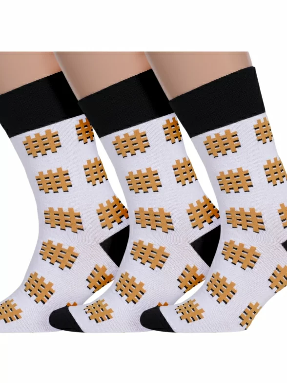 Комплект мужских носков бренда MSCLUB с геометрическим принтом в виде решеток. Модель средней длины с двойным бортом (манжетом резинки) и ощутимым уплотнением в месте шва на мыске.