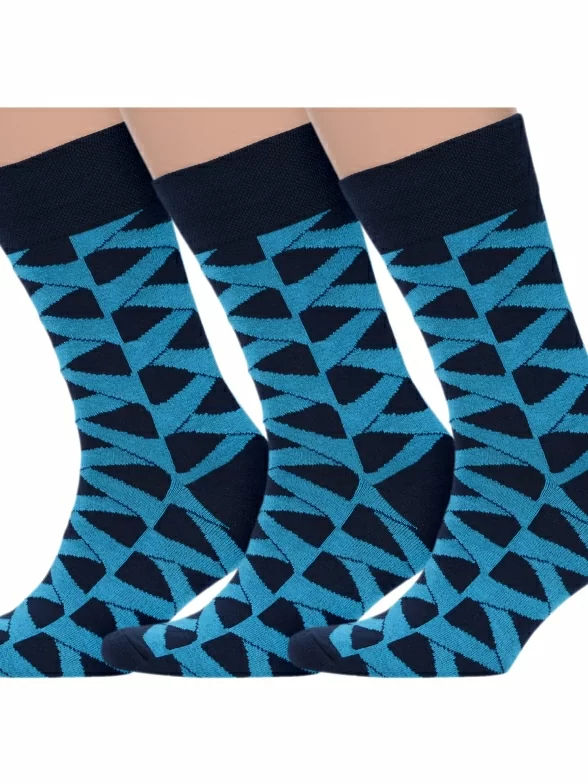 В комплект входят 3 одинаковые пары темно-синих носков, поставляются с индивидуальными фабричными этикетками в обычном или курьер-пакете.