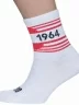 В комплект входят 3 одинаковые пары белых носков "1964 Tokyo", поставляются с индивидуальными фабричными этикетками в обычном или курьер-пакете.