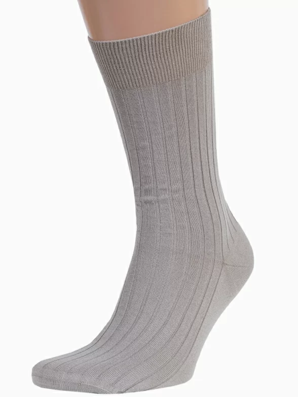 Изготовлены на российской фабрике "Орудьевский трикотаж" в Московской области из 100% хлопка. Модель средней длины связана в рубчик; имеет одинарный борт (манжет резинки) и неощутимый шов на мыске.