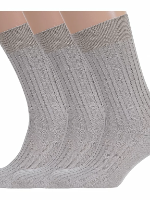 Комплект из 3 пар мужских носков RuSocks (Орудьевский трикотаж) из 100% хлопка, 3-М3-11001, рис. 02, ТЕМНО-БЕЖЕВЫЕ