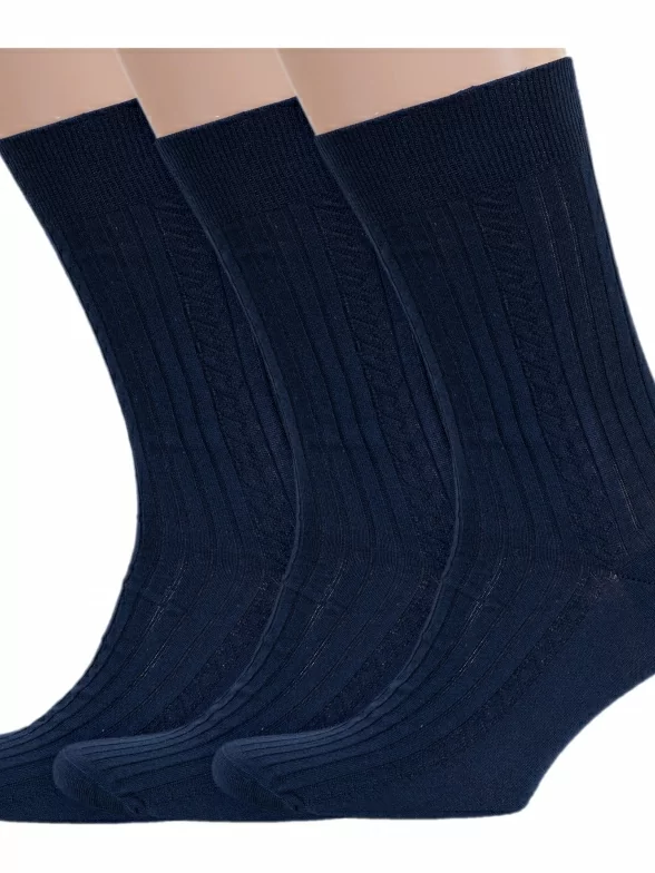 Комплект из 3 пар мужских носков RuSocks (Орудьевский трикотаж) из 100% хлопка, 3-М3-11001, рис. 02, ТЕМНО-СИНИЕ
