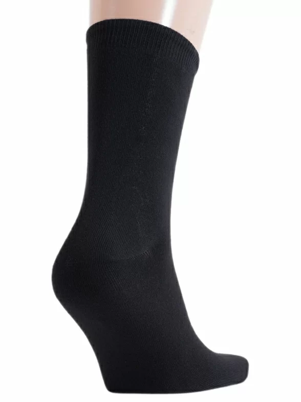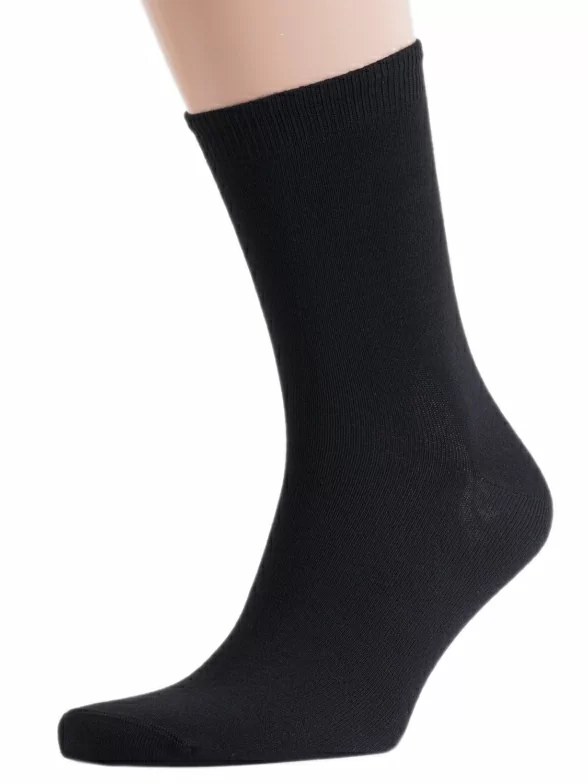Однотонная модель средней длины с двойным бортом (манжетом резинки). Изготовлены на фабрике в Подмосковье из хлопка с добавлением полиамида и эластана (80% хлопок, 15% полиамид, 5% эластан) для износостойкости изделия и комфортной посадки.