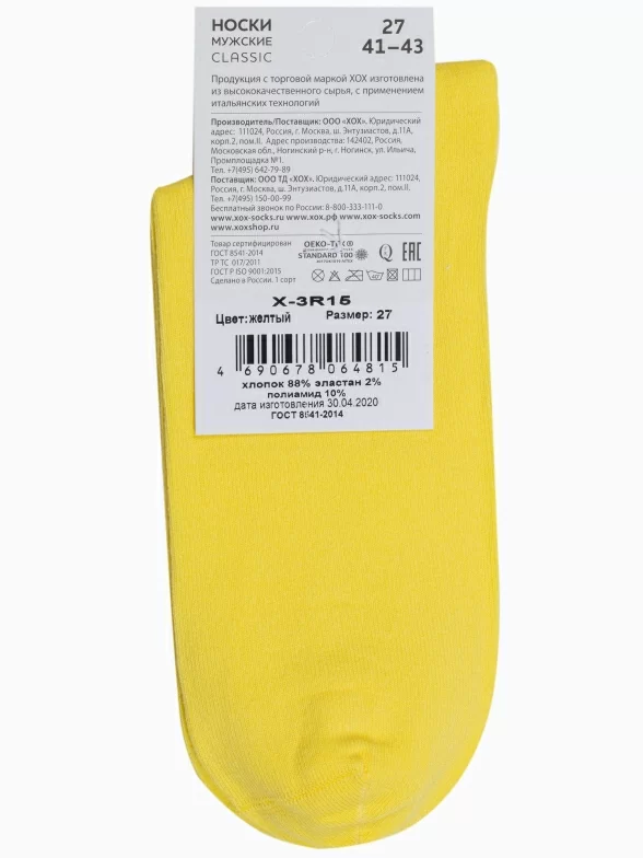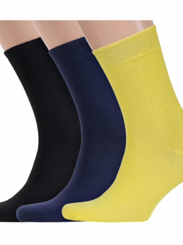 В комплект входят 3 пары носков артикула X-3R15 с индивидуальными фабричными этикетками: по 1 паре темно-синих, желтых и черных.