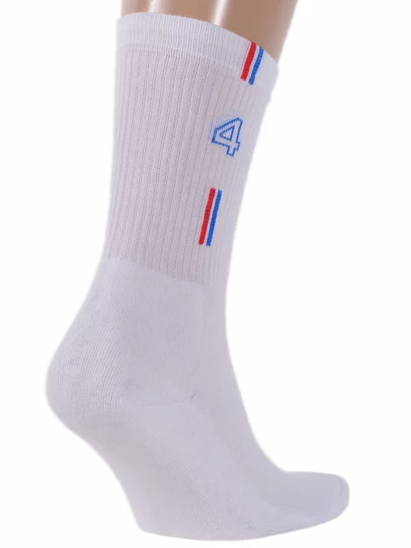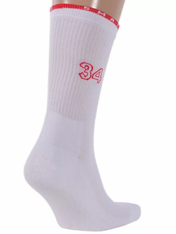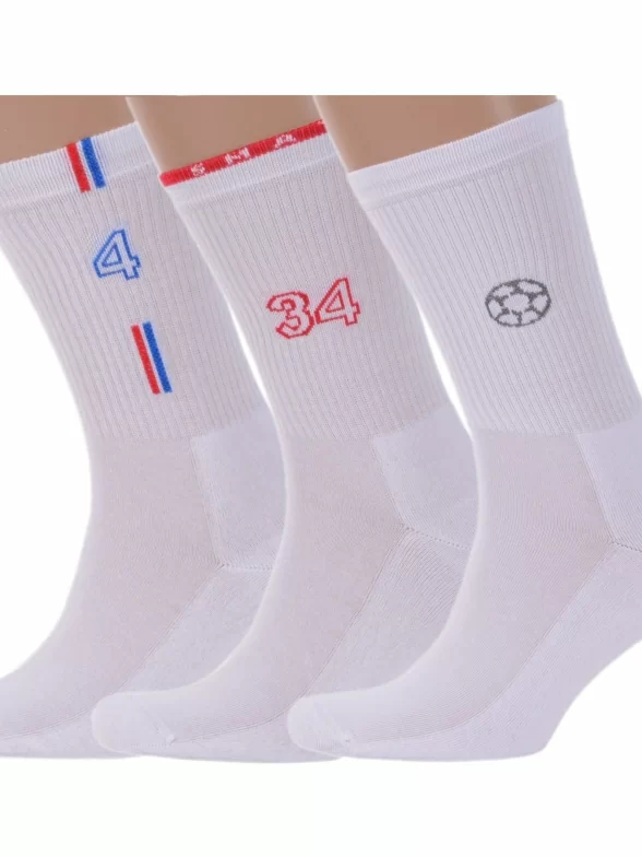 В комплект входят 3 пары носков с индивидуальными фабричными этикетками: по 1 паре белых с принтом "4", с принтом "Мяч" и с принтом "34".