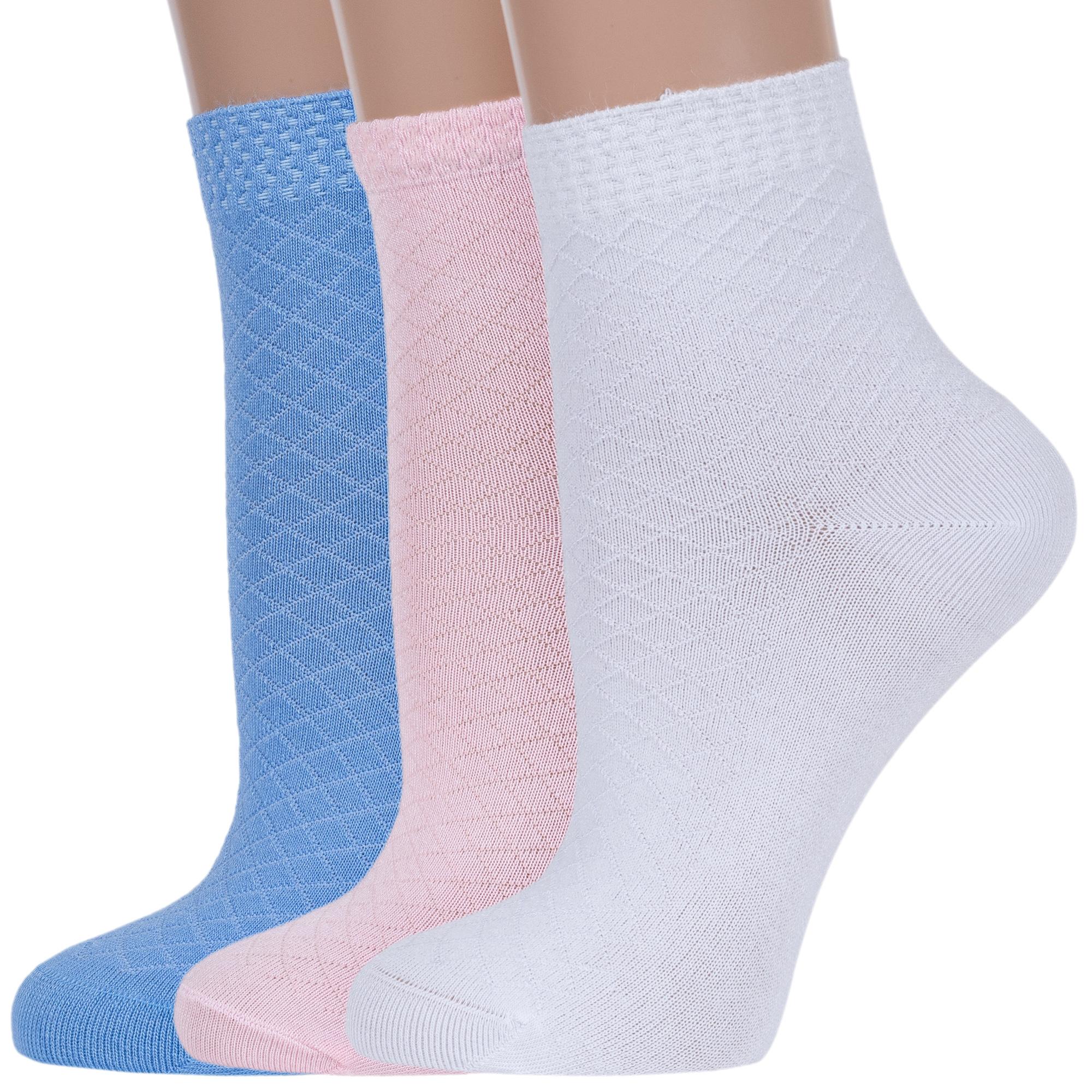 В комплект входят 3 пары носков артикула G-223 с индивидуальными фабричными этикетками: по 1 паре розовых, белых и голубых.