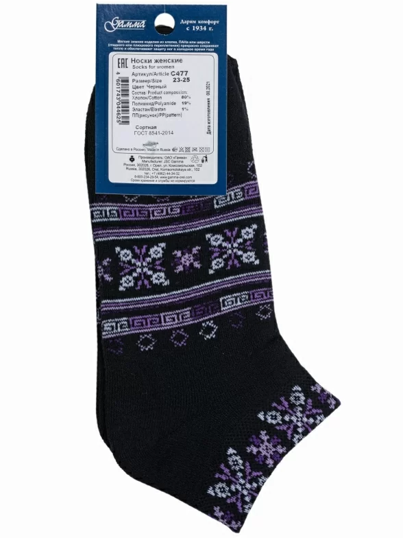 В комплект входят 3 пары черных носков артикула С477 с индивидуальными фабричными этикетками.