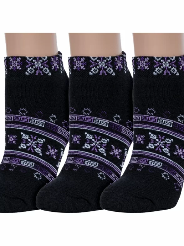 Комплект из 3 пар женских махровых носков Гамма, 3-С477, ЧЕРНЫЕ