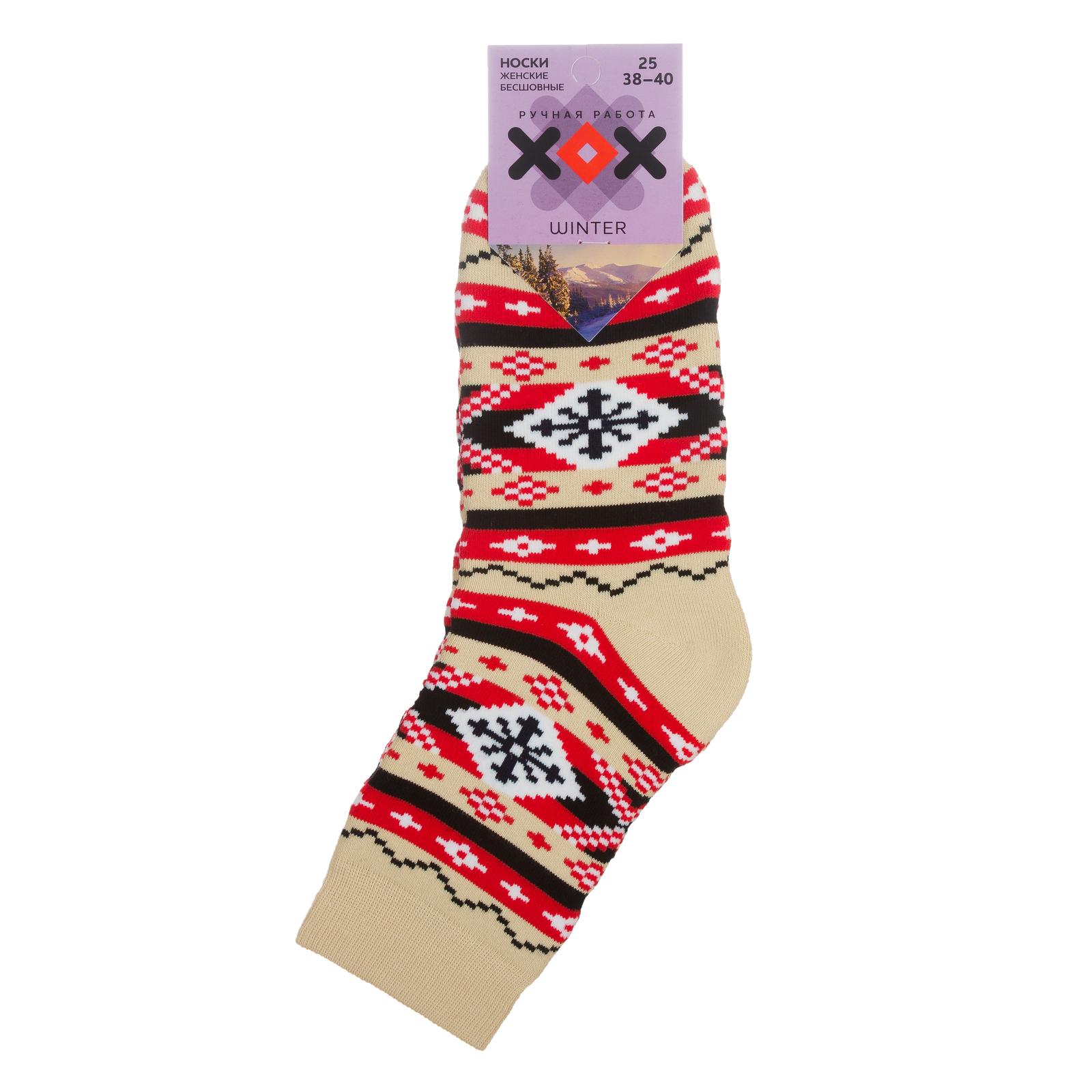 Комплект из 3 пар женских махровых носков ХОХ 3-GZ-3Rs, GZ-3R18, КРЕМОВО-КРАСНЫЕ