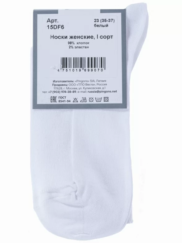В комплект входят 3 пары белых носков артикула 15DF6 с индивидуальными фабричными этикетками, поставляются в прозрачном пакете с дополнительной транспортной упаковкой.