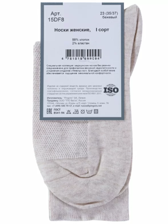 В комплект входят 3 пары бежевых носков артикула 15DF8 с индивидуальными фабричными этикетками, поставляются в прозрачном пакете с дополнительной транспортной упаковкой.