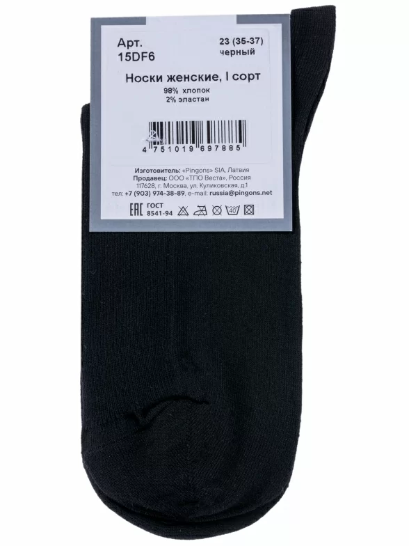 В комплект входят 3 пары черных носков артикула 15DF6 с индивидуальными фабричными этикетками, поставляются в прозрачном пакете с дополнительной транспортной упаковкой.