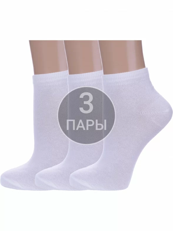 Комплект женских носков из 3 пар, летние, короткие, цвет белый, классические, шов обычный (не бесшовные), принт (рисунок): без рисунков/узоров, однотонный, состав: 75% хлопок, 23% полиамид, 2% эластан, арт. 3-А61. Производитель «ООО Альтаир, г. Орск, Оренбургская обл, Россия» под брендом «Альтаир».