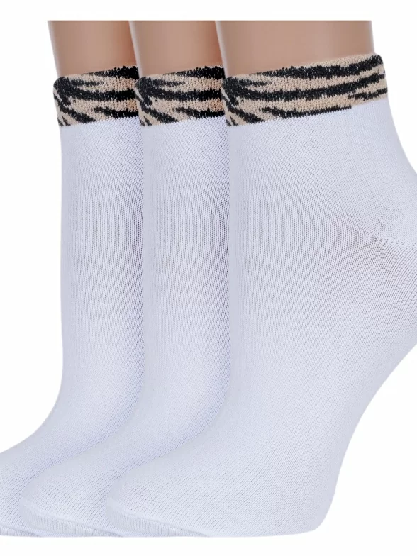 Комплект из 3 пар женских носков Альтаир, 3-А210, БЕЛЫЕ, рис. Зебра