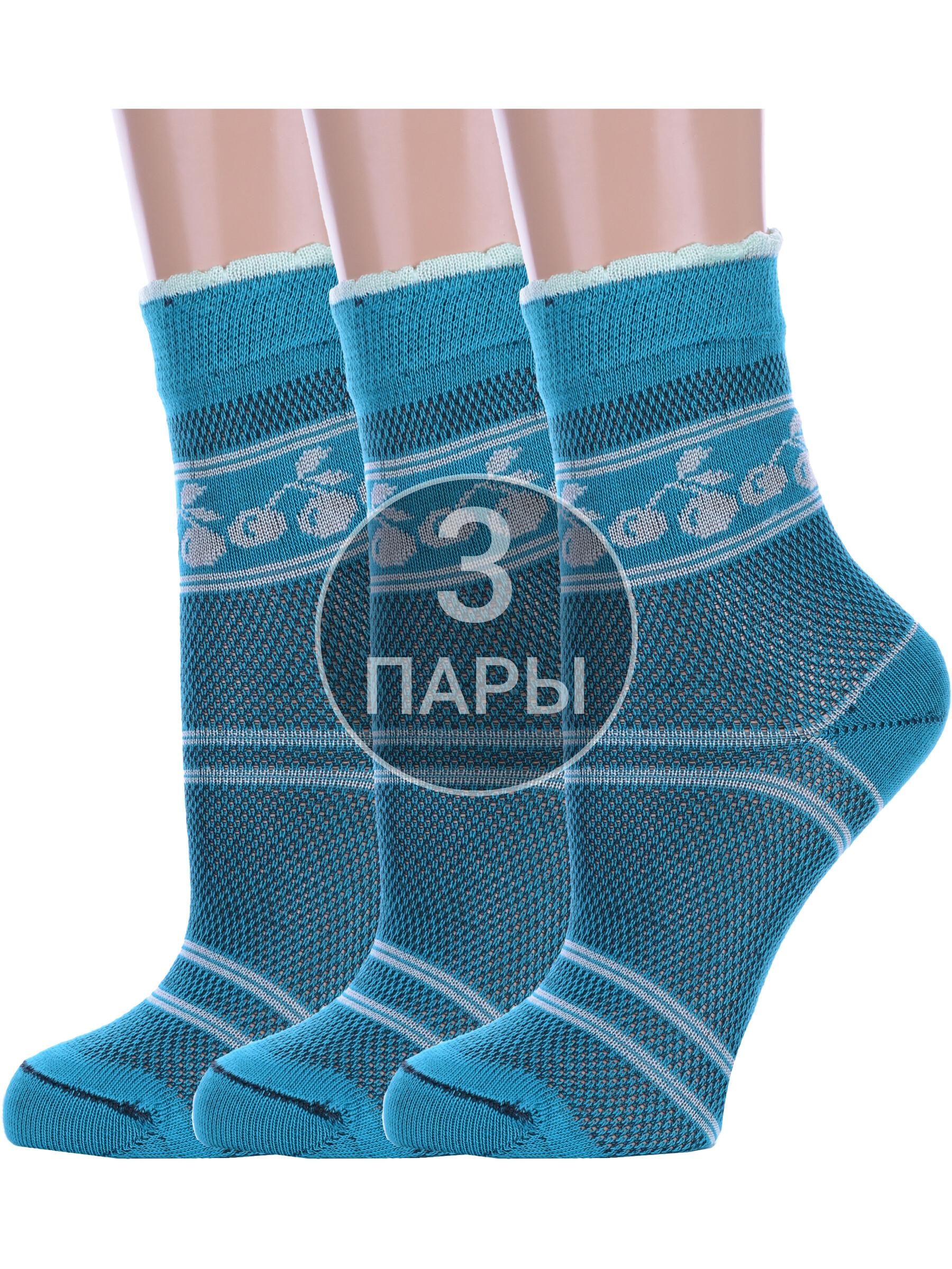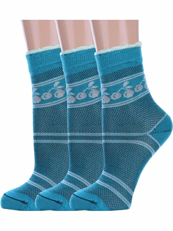 Комплект женских носков из 3 пар, летние, укороченные, цвет изумрудный, ажурные, в сеточку, повседневные, шов обычный (не бесшовные), принт (рисунок): с узором, овощи / фрукты / ягоды, состав: 78% хлопок, 22% полиамид, арт. 3-А227. Производитель «ООО Альтаир, г. Орск, Оренбургская обл, Россия» под брендом «Альтаир».