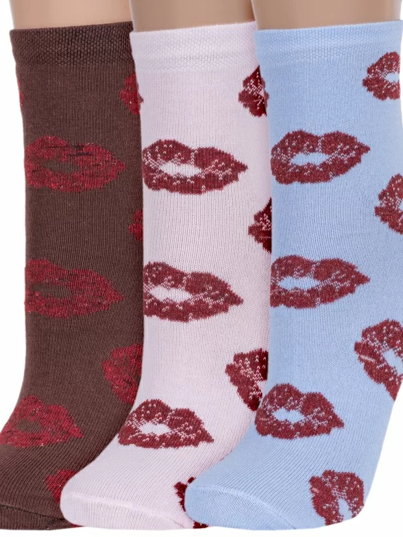 В комплект входят 3 пары носков артикула С212 с индивидуальными фабричными этикетками: по 1 паре коричневых, светло-розовых и светло-голубых.