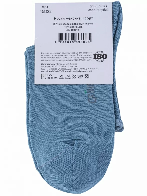В комплект входят 3 пары носков артикула 15D22 с индивидуальными фабричными этикетками: по 1 паре синего, джинсового и голубого цветов.