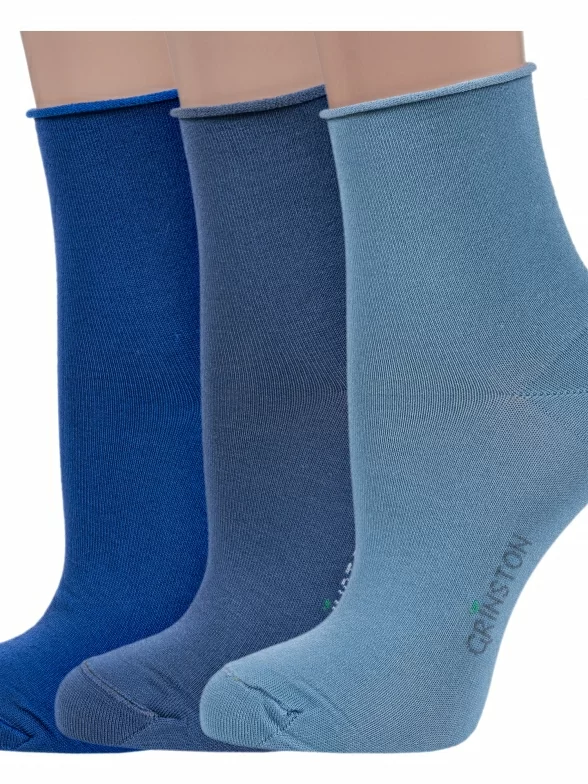 Комплект из 3 пар женских носков без резинки Grinston socks (PINGONS) из мерсеризованного хлопка, 3-15D22, микс 4