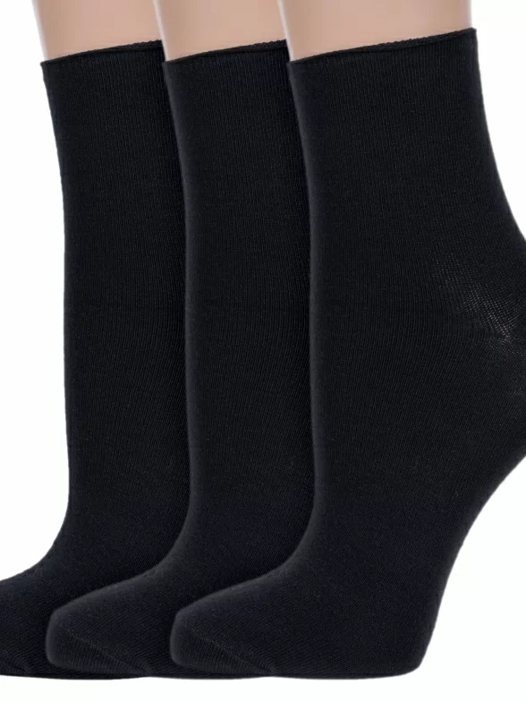 Комплект из 3 пар женских носков без резинки ХОХ, 3-G-1406, ЧЕРНЫЕ