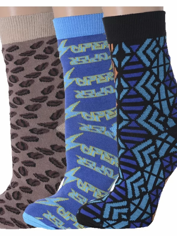 В комплект входят 3 пары носков, упакованных в прозрачный пакет, с индивидуальными фабричными этикетками.