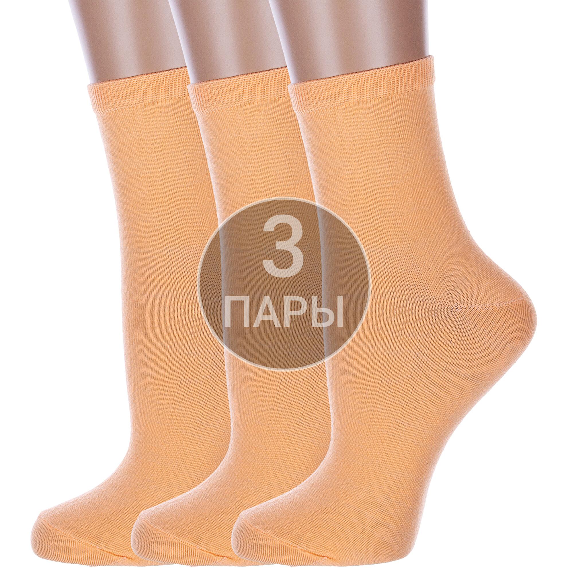 Комплект женских носков из 3 пар, круглогодичные, укороченные, цвет оранжевый, классические, шов обычный (не бесшовные), принт (рисунок): однотонный, без рисунков/узоров, состав: 75% хлопок, 23% полиамид, 2% эластан, арт. 3-Нжх339-21. Производитель «Китай, страна бренда - Россия» под брендом «Hobby line».