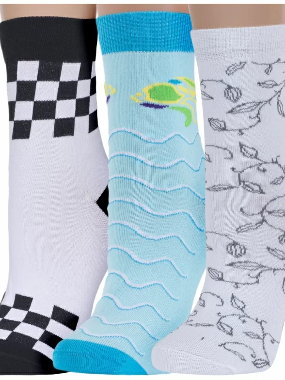 В комплект входит по 1 паре носков разных цветов, рисунков и артикулов: