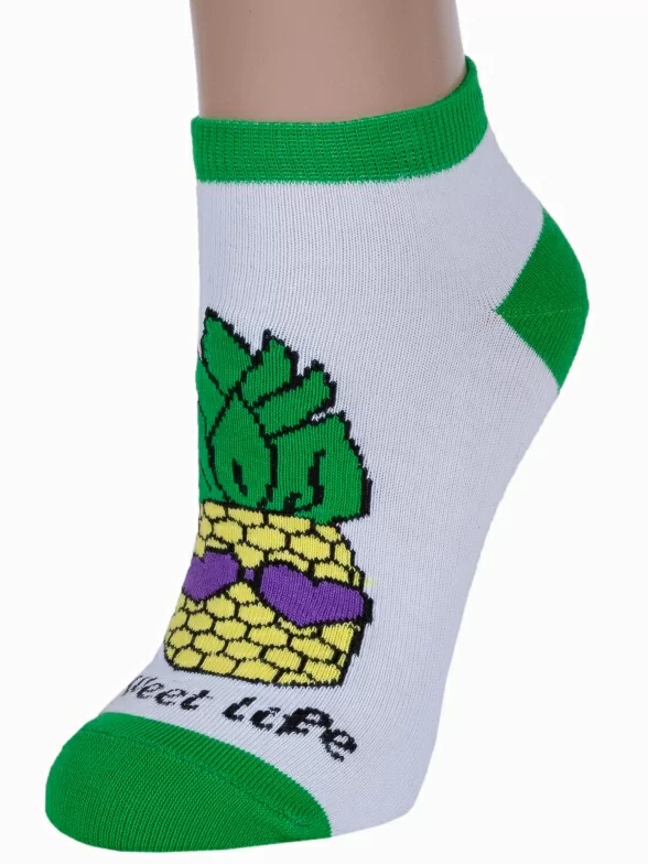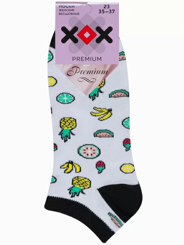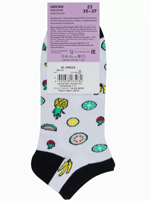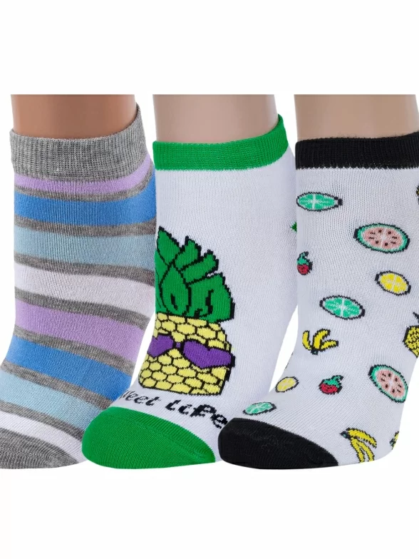 В комплект входят носки разных артикулов: G-3R23 белые, G-3R27 белые с ананасом, G-3R5 серые. Все три пары имеют индивидуальные фабричные этикетки.