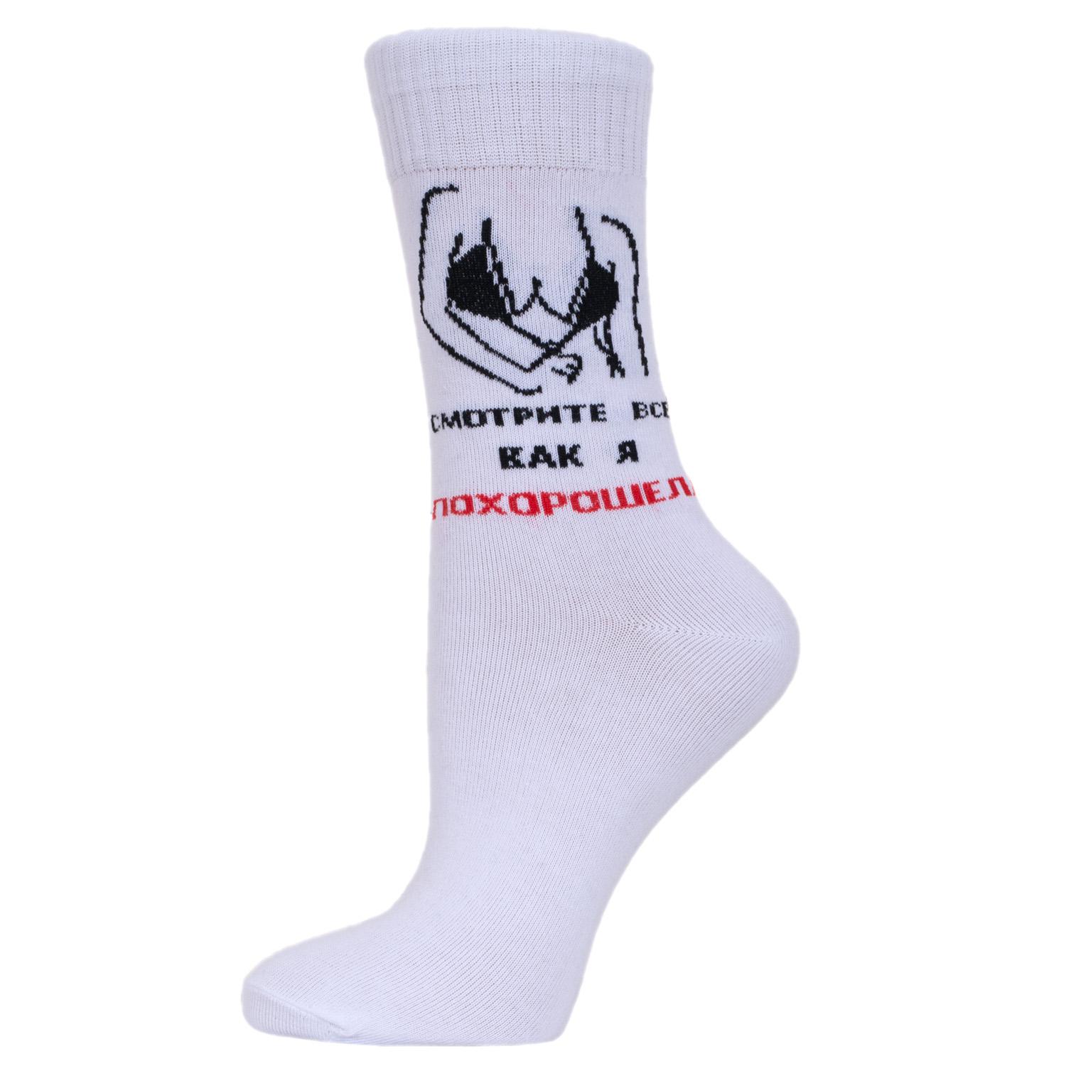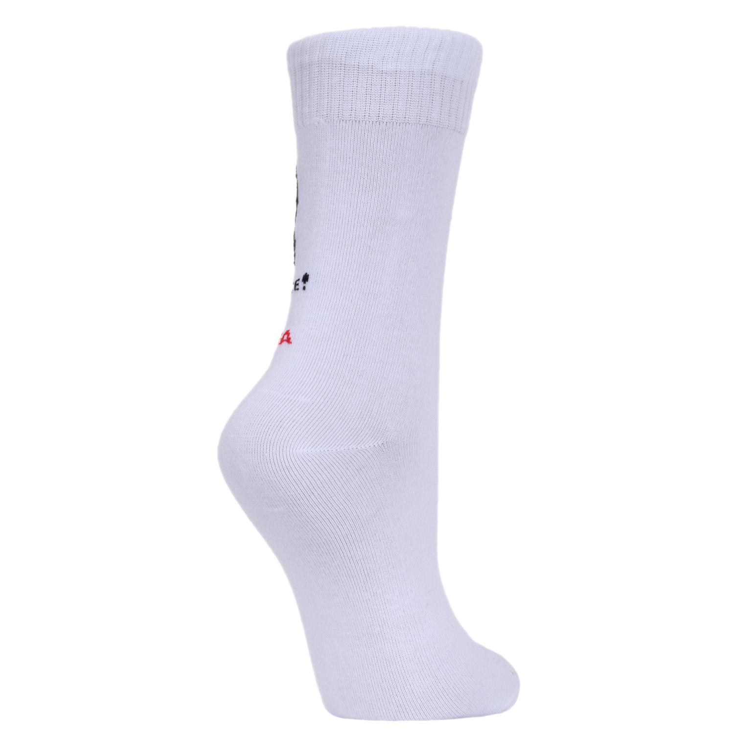 Комплект женских носков из 3 пар, круглогодичные, средней длины, цвет белый, повседневные, шов обычный (не бесшовные), принт (рисунок): надписи, состав: 82% хлопок, 15% полиамид, 3% эластан, арт. 3-WNM-41. Производитель «ИП Рыбалкин В.С., Московская область, г. Щелково» под брендом «Msclub».