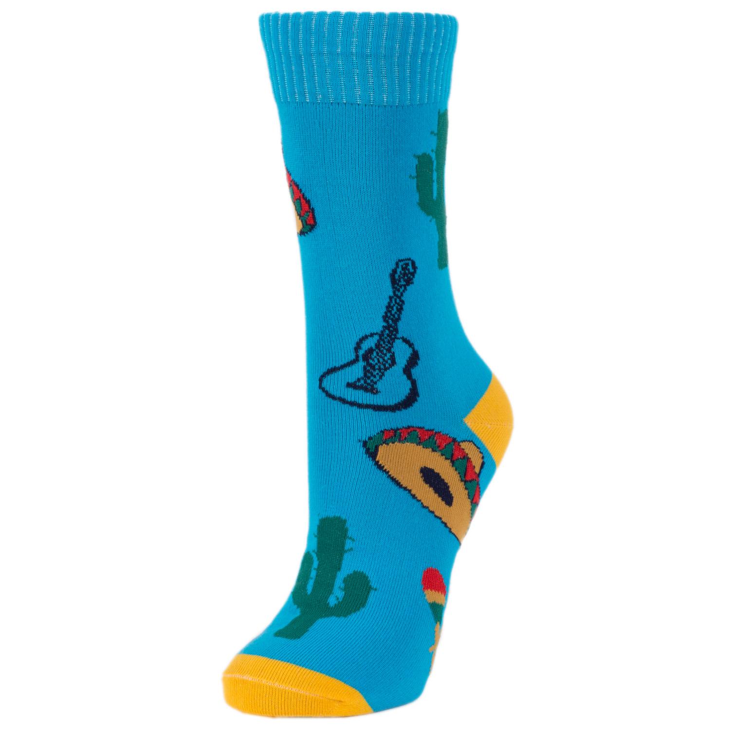 Комплект женских носков из 3 пар, круглогодичные, средней длины, цвет бирюзовый, повседневные, шов обычный (не бесшовные), принт (рисунок): цветы / растения, путешествия, игры, состав: 82% хлопок, 15% полиамид, 3% эластан, арт. 3-WNM-52. Производитель «ИП Рыбалкин В.С., Московская область, г. Щелково» под брендом «Msclub».