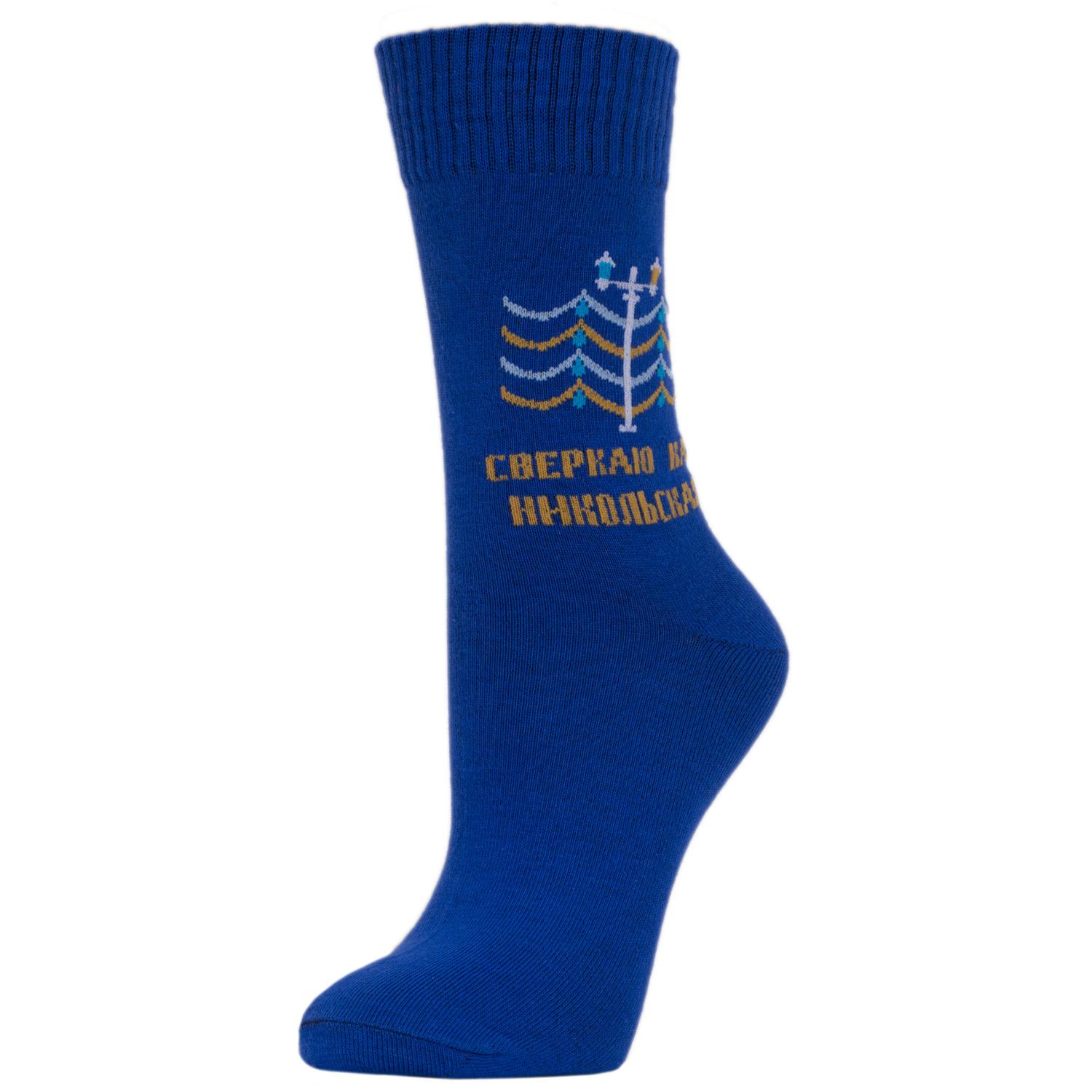 Комплект женских носков бренда MSCLUB с принтом виде фонаря с гирляндами и надписи "Сверкаю как Никольская" про известную улицу в центре Москвы.