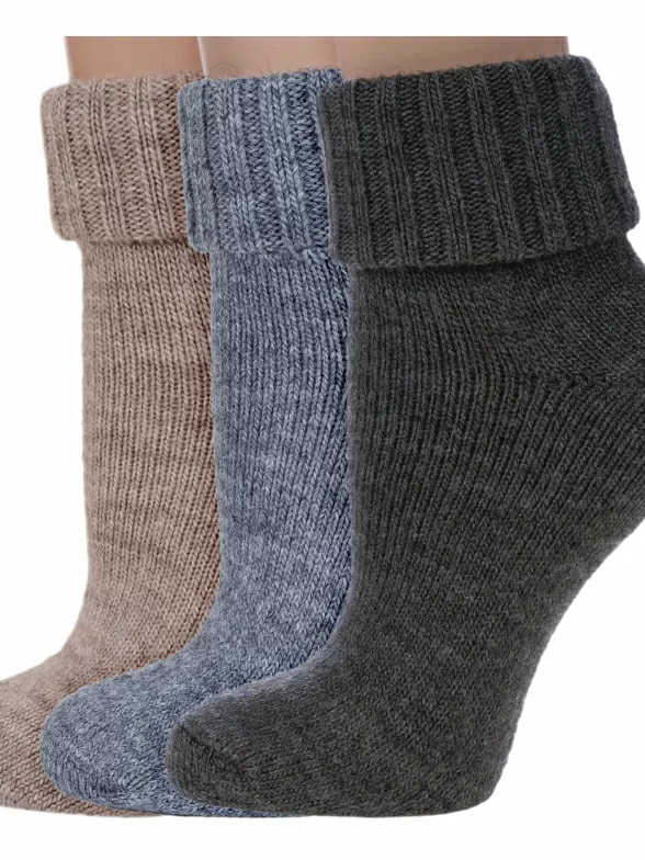 В комплект входят 3 пары носков артикула Ж-195 с индивидуальными фабричными этикетками: по 1 паре темно-бежевых, коричневых и серых.