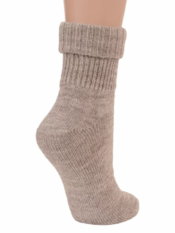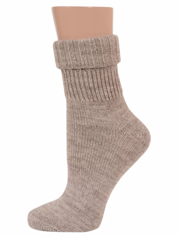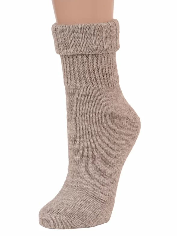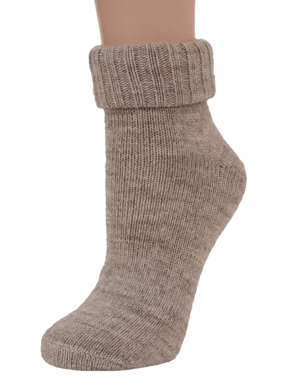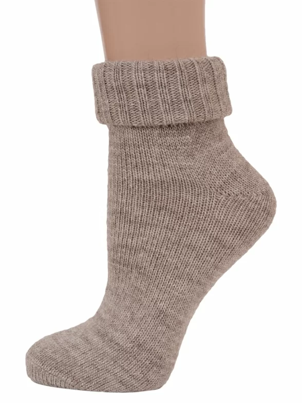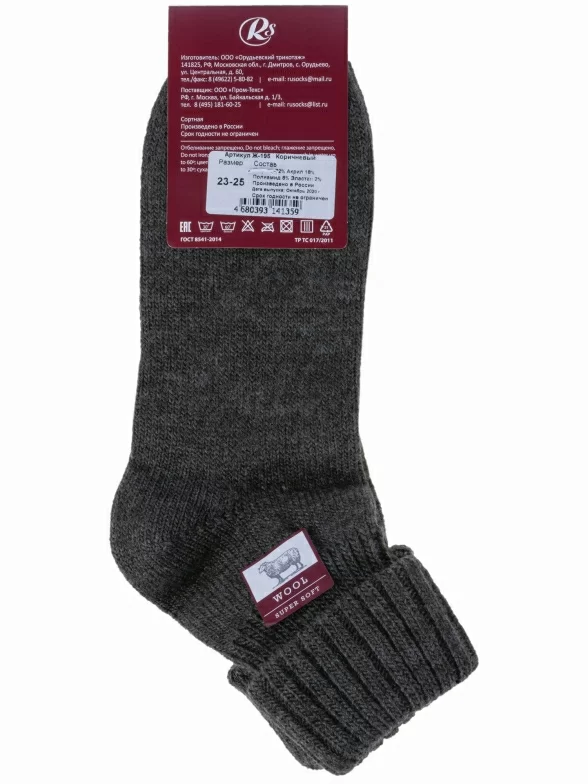Укороченная модель с отворотом и плоским малоощутимым швом на мыске. Изготовлены на фабрике "Орудьевский трикотаж" в Московской области из шерсти с добавлением полиамида и эластана для износостойкости изделия и комфортной посадки. Входящий в состав акрил имеет свои преимущества - благодаря ему носки меньше растягиваются и не выцветают со временем, а шерсть становится не такой колючей и более мягкой.