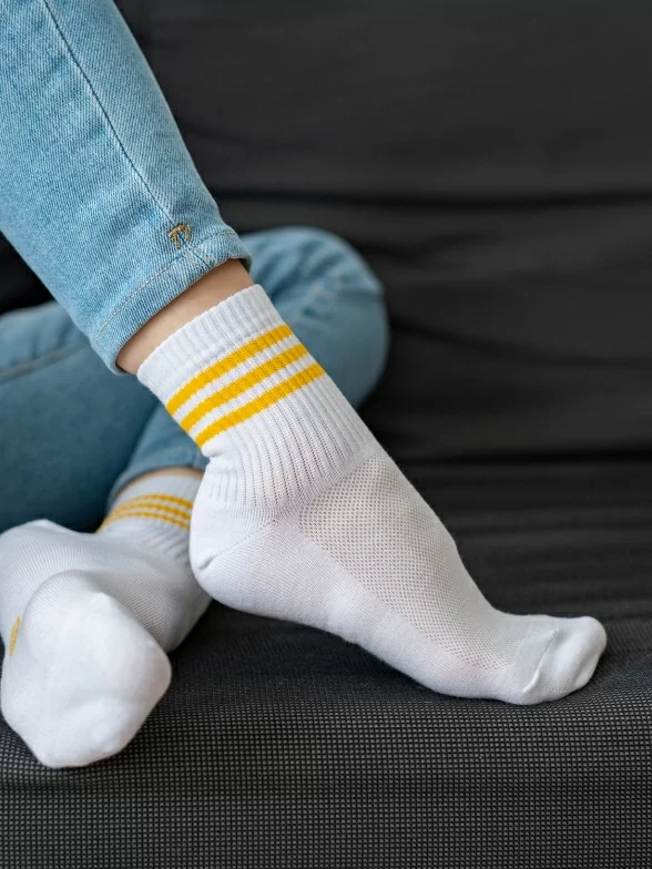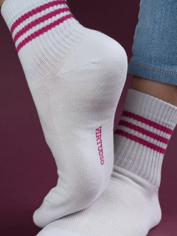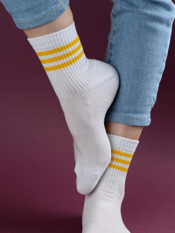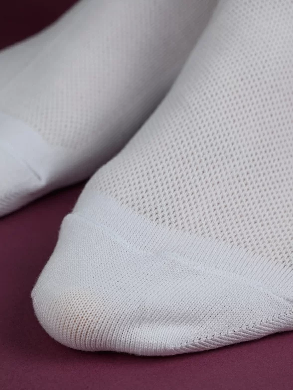 Модель укороченной длины с обычным швом на мыске, а также усиленными мыском и пяткой. Сеточка на передней части подъема стопы обеспечивает усиленную микроциркуляцию воздуха, а паголенок в рубчик надежно фиксирует носок на ноге, предотвращая сползание во время занятий спортом.