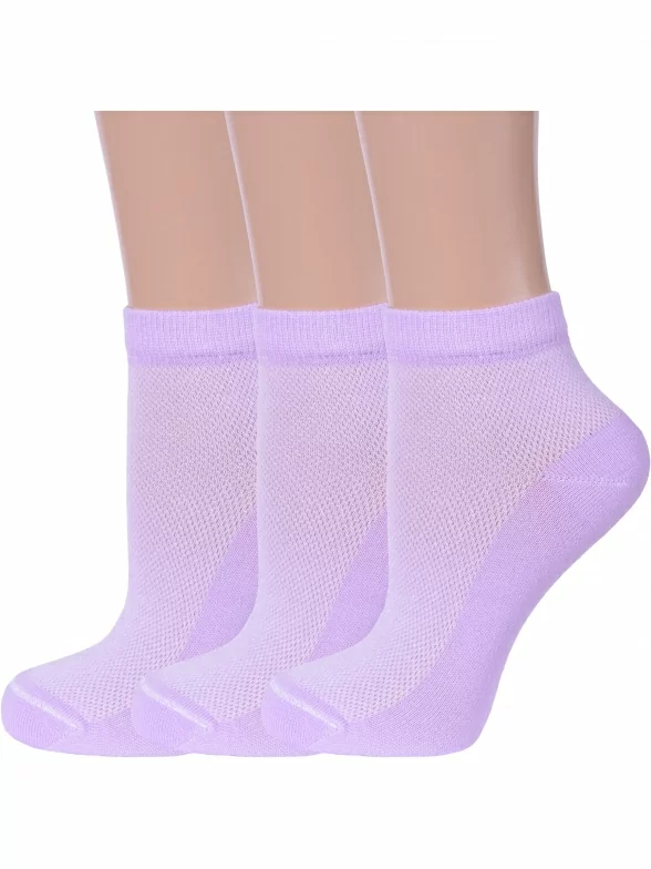 Комплект женских носков из 3 пар, летние, короткие, цвет сиреневый, в сеточку, повседневные, шов обычный (не бесшовные), принт (рисунок): однотонный, с узором, состав: 80% хлопок, 18% полиамид, 2% эластан, арт. 3-С82. Производитель «ООО Альтаир, г. Орск, Оренбургская обл, Россия» под брендом «Альтаир».