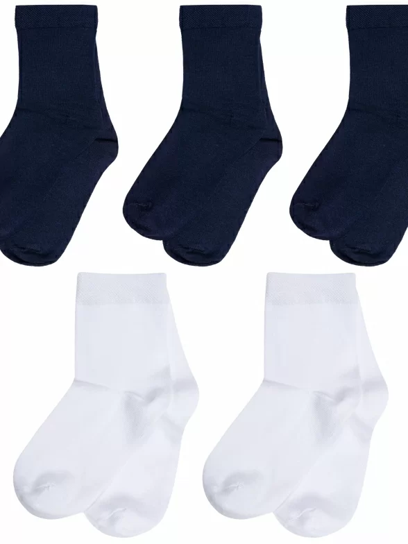 В комплект входят 3 пары темно-синих и 2 пары белых носков артикула D-1425 с индивидуальными фабричными этикетками.