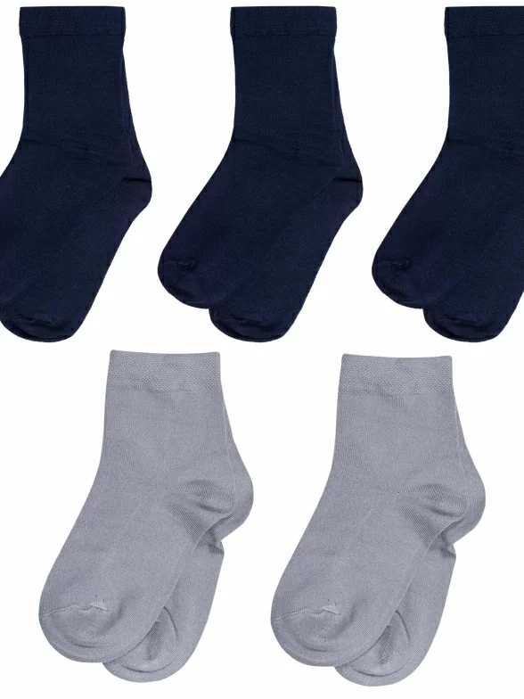 В комплект входят 3 пары темно-синих и 2 пары серых носков артикула D-1425 с индивидуальными фабричными этикетками.