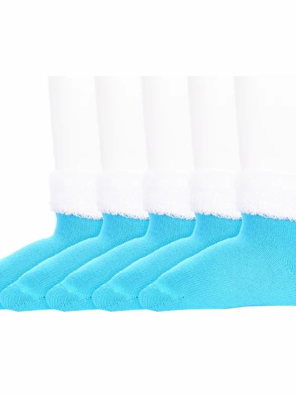 Комплект детских носков из 5 пар, зимние или межсезонные, укороченные, цвет бирюзовый, классические, махровые, с отворотом, теплые, состав: 90% хлопок, 7% полиамид, 3% эластан (лайкра), арт. 5-Л35. Производитель «ИП Мурзаков В.А., Ставропольский край, Россия» под брендом «Lorenzline».
