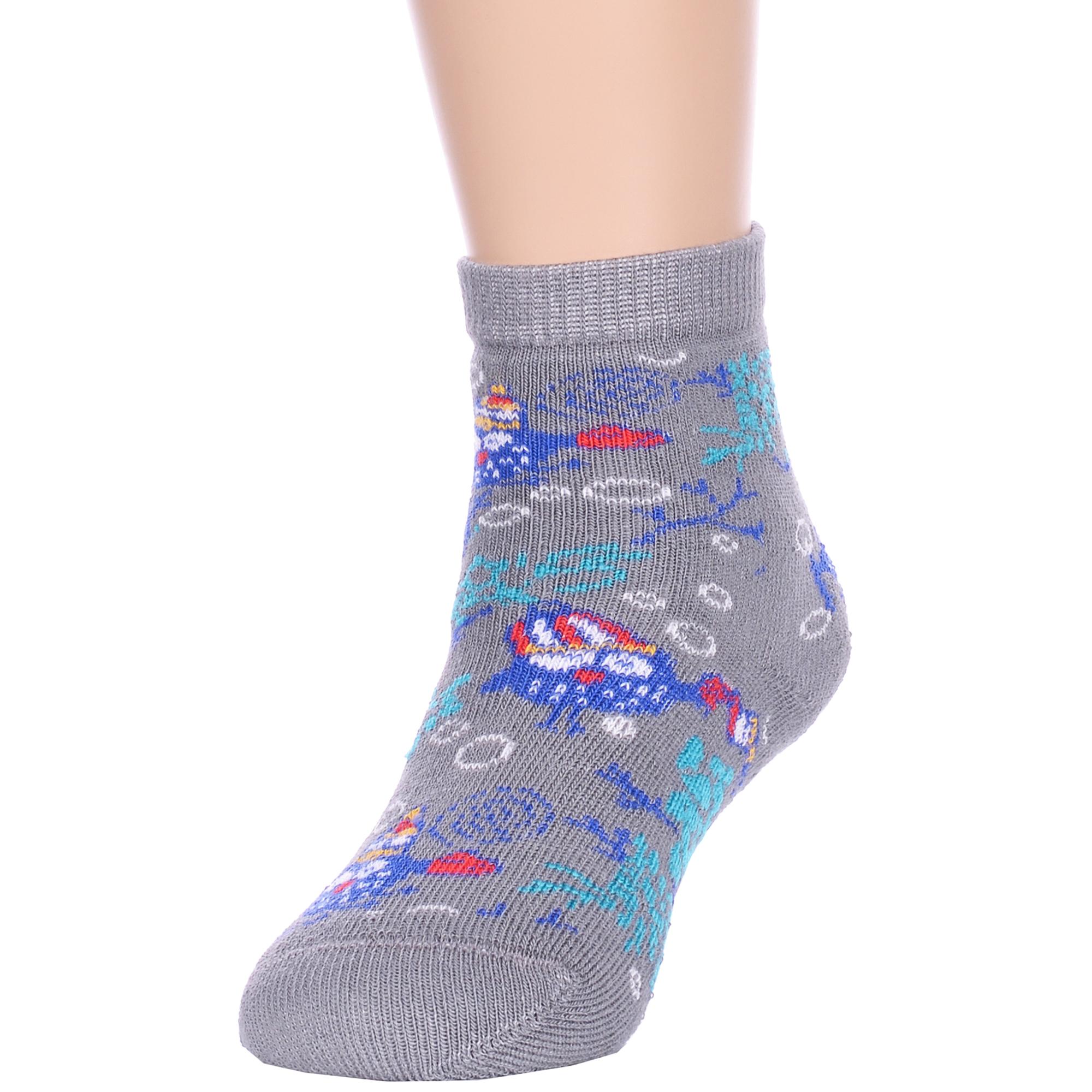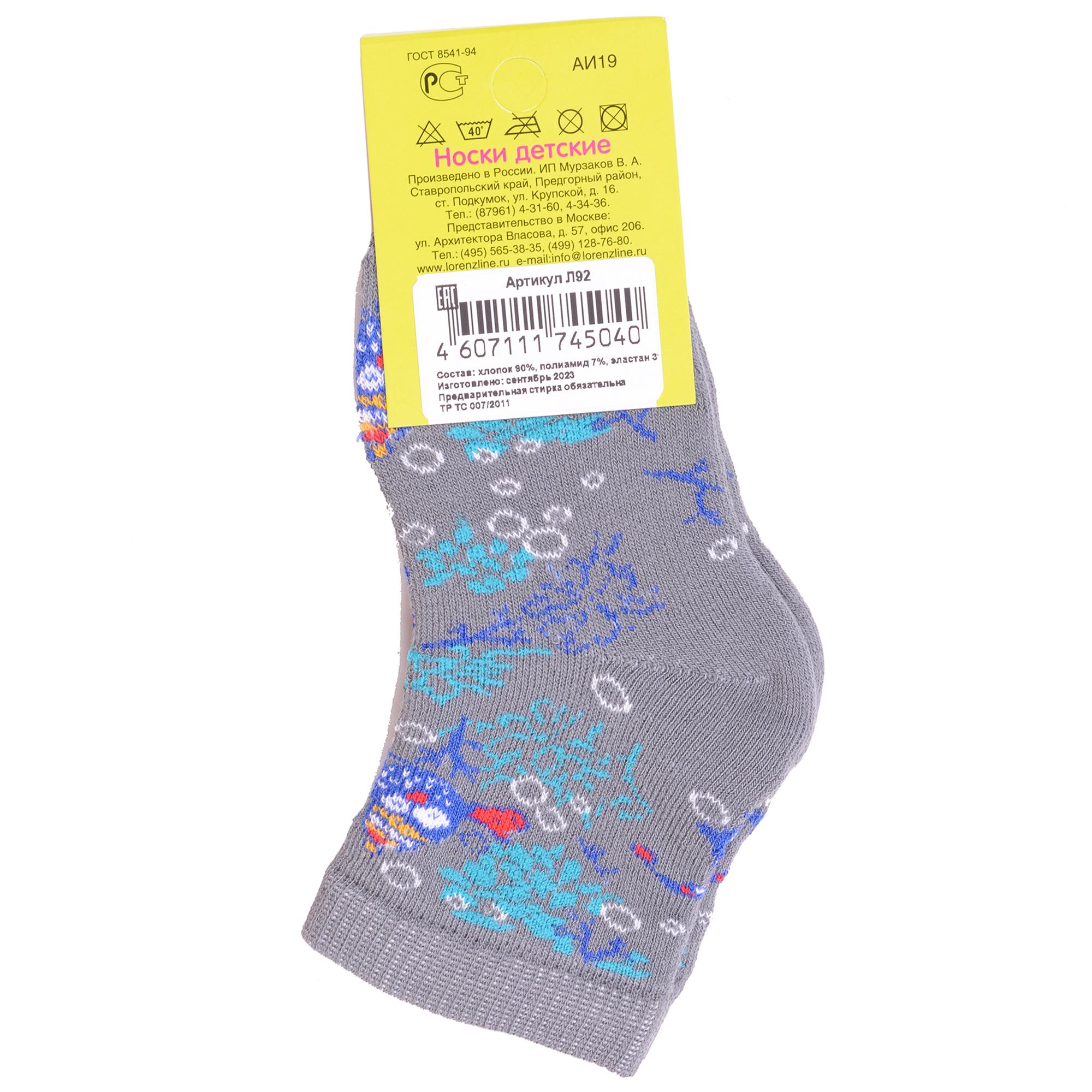 Комплект детских носков из 5 пар, межсезонные или зимние, укороченные, цвет серый, теплые, с принтом, махровые, состав: 90% хлопок, 7% полиамид, 3% эластан (лайкра), арт. 5-Л92. Производитель «ИП Мурзаков В.А., Ставропольский край, Россия» под брендом «Lorenzline».